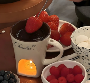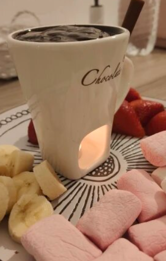 Yes! A standard tealight candle generates enough heat to melt 80-100 g of chocolate in just 3-5 minutes. The ceramic cup distributes the warmth evenly, keeping the chocolate smooth and melted throughout your dessert.